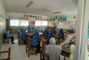 Kemudian semarak milad dilanjutkan oleh bapak ibu guru dan karyawan mengikuti acara resepsi milad melalui you tube.